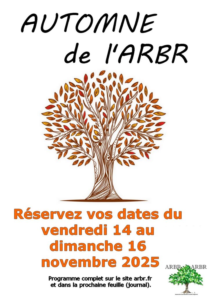 TousA venir201820192020202120222023202420252026 Information sur l'évènement ven14Nov2025dim16Nov2025Fête de l'Automne de l'ARBRFerme Poisson / salle Saint René - Bois Raguenet ACTUALITÉS / Prochains évènements: mer01Oct2025dim26Oct2025 OCTOBRE EN FÊTE 2025 - ARBRsuivant joursBois Raguenet 44700 ORVAULT sam25Oct2025 Concert Chorale Or'Vocal20h45Eglise Saint-Thomas 44800 SAINT-HERBLAIN sam22Nov2025 Les Fresques 2025-20269h30 à 12h30Salle Saint René - chemin des mâtines - ORVAULT - Bois Raguenet sam17Jan2026dim25Jan2026 Théâtre de l'ARBR20h30 ou 17h suivant joursThéâtre de la Gobinière Voir tous les évènements