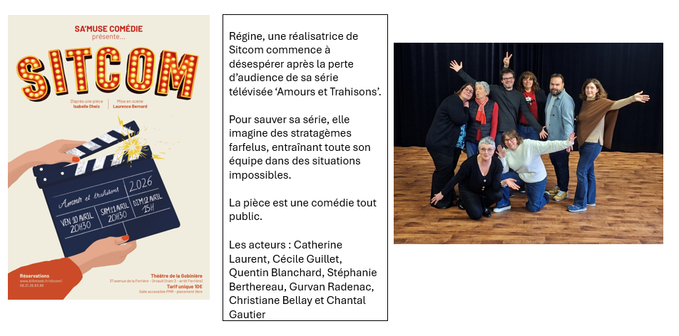 La troupe de théâtre amateur Samuse Comédie a le plaisir de vous présenter sa comédie pour 2026.