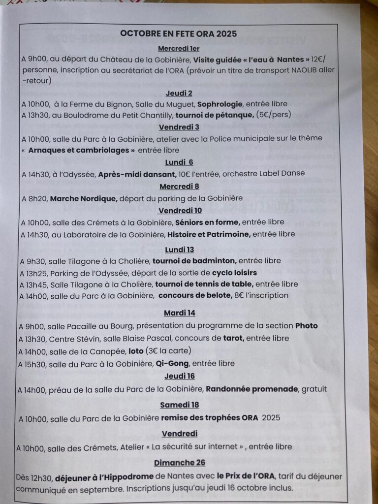 * PROGRAMME de Orvault Retraite Active (ORA):
